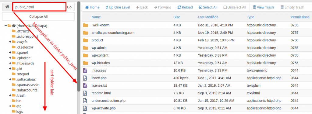 3. Lihatlah folder yang paling banyak menggunakan space hosting