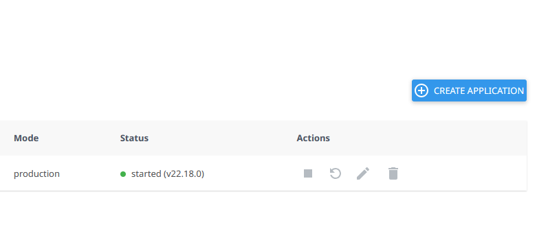 Setelah ada di halaman Setup Node.js App, klik tombol “CREATE APPLICATION”